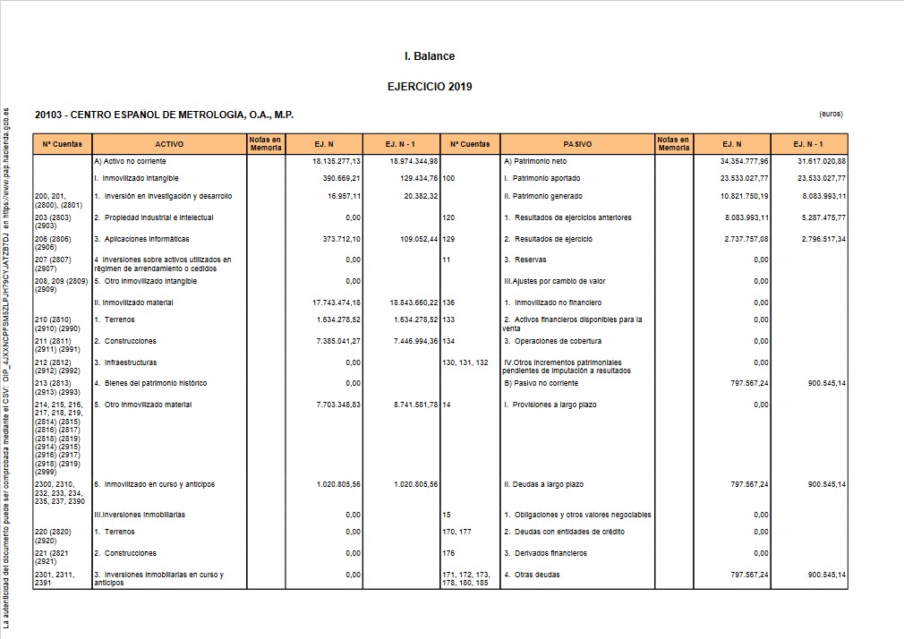 Cuentas anuales del CEM correspondientes al ejercicio 2019